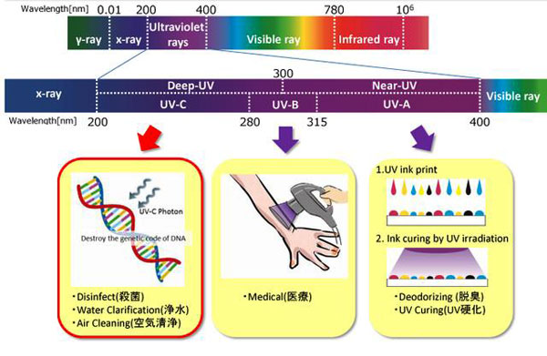 紫外線在240-280nm波長范圍內破壞力*強,可破壞細菌中的DNA或RNA分子結構,從而達到殺菌效果,尤其253.7nm波長范圍內,當水藻經過的時候就會被破壞,藻類的細胞壁或者細胞質更能在紫外光的作用下分解乃至溶融。
